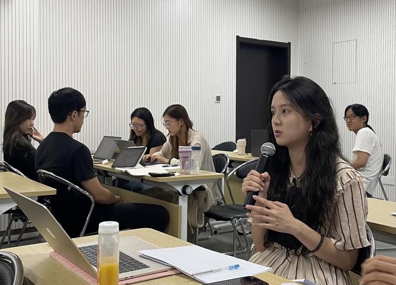 在谈判模拟结束后,同学们学习了“重释”(reframe)这一关键的谈判技巧,并围绕全球气候变化这一议题进行了分组练习,将所学知识应用于更广阔的全球议题。通过小组讨论,在倾听对方陈述的基础上,同学们尝试转换视角以积极的方式对其进行重新表述,将“分歧点”转化为“合作点”,以揭示对方潜在的兴趣、价值观或身份。这一练习让大家深刻体会到改变问题的定义方式,学会从“我要什么”到“我们共同需要什么”,对于冲突的解决和矛盾的化解至关重要。