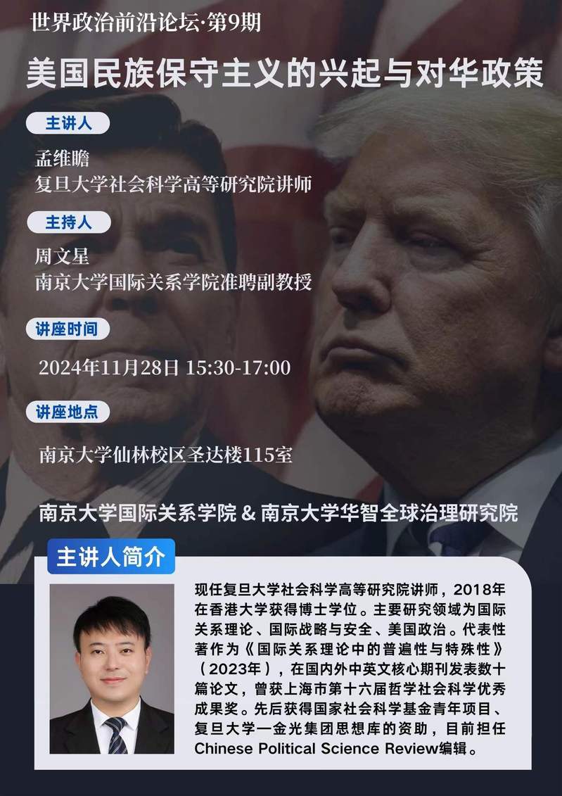 【讲座预告】孟维瞻:美国民族保守主义的兴起与对华政策