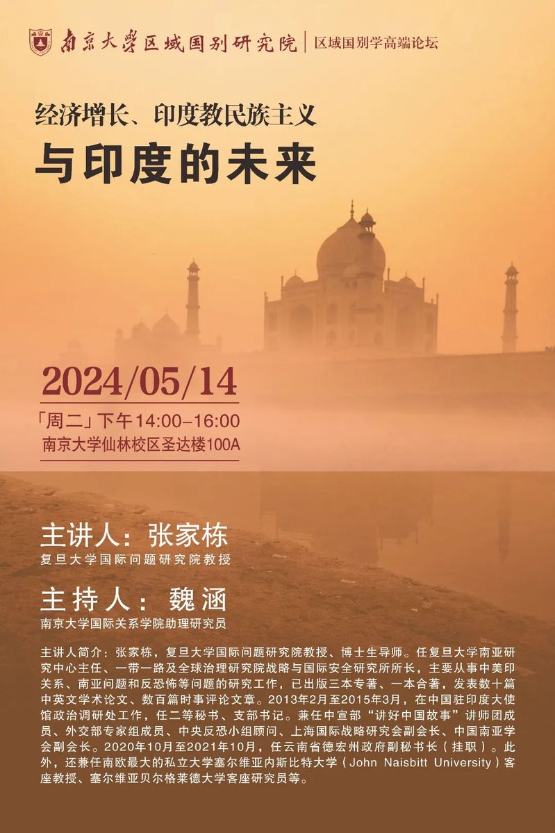 【讲座预告】张家栋:经济增长、印度教民族主义与印度的未来
