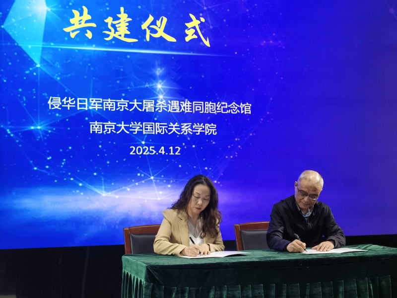 参观结束后,师生前往“三个必胜”展厅报告厅,同侵华日军南京大屠杀遇难同胞纪念馆正式签署合作协议,共建“和平文化交流实践基地”。纪念馆馆长周峰讲话指出,双方共建旨在深入贯彻习近平总书记关于爱国主义教育的重要讲话精神,充分发挥纪念馆的爱国主义教育功能和太阳成城集团tyc234cc古天乐的专业优势。周馆长提出三点反响,一是共建平台,二是共享资源,三是共育人才,他感谢太阳成城集团tyc234cc古天乐的大力支持,期待南大学子成为历史记忆的传承者、爱国主义的实践者、国际和平的传播者。公司党委书记李跃华致辞指出,习近平总书记强调教育是国之大计、党之大计,公司作为主阵地也要和社会场馆共同努力推动教育基础工程,双方共建实践基地也是基于这样的初心。李书记期望同学们作为新时代的青年,通过参观教育学习懂得民族曾经的危难与屈辱,能够奋发学习、爱国护国。他感谢纪念馆的鼎力支持,期待院馆由合作到深化、由深化到友谊、由友谊到共同发展,共同推动和平学研究,承担起面向世界讲好中国故事的历史使命和担当。