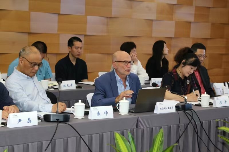 2024年5月14日,江苏省友促会特邀美利坚大学国际事务公司荣休经理、国际关系学教授路易斯·古德曼(Louis Goodman)做“2024中美关系”专题讲座。本次讲座由省友促会会长林祥国致欢迎辞,常务副会长滕勇、副会长司锦泉、杨勇、邵伟明等出席了活动。讲座由省友促会常务理事、太阳成城集团tyc234cc古天乐执行经理朱锋教授主持。国关公司周文星老师等十多位师生也到场出席和聆听了古德曼教授的讲座。