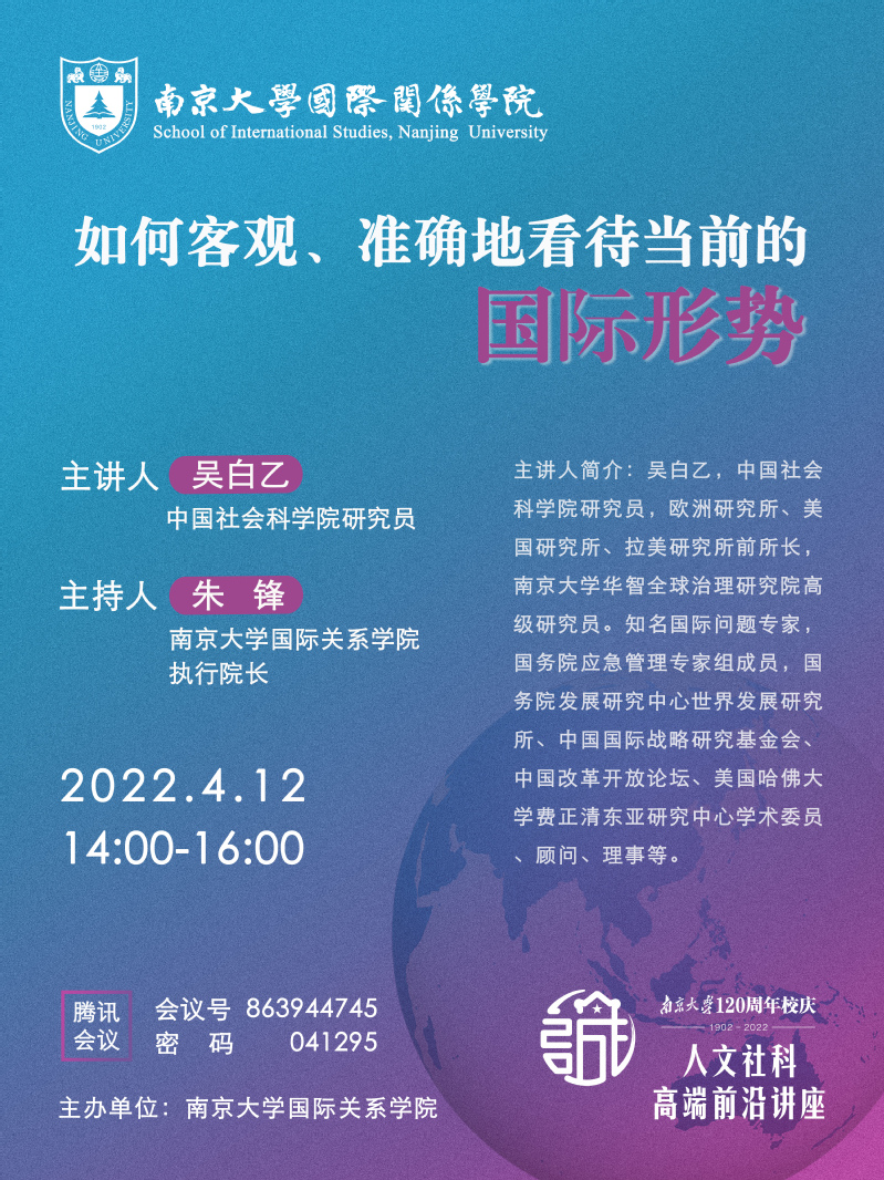 【讲座预告】吴白乙:如何客观、准确地看待当前的国际形势