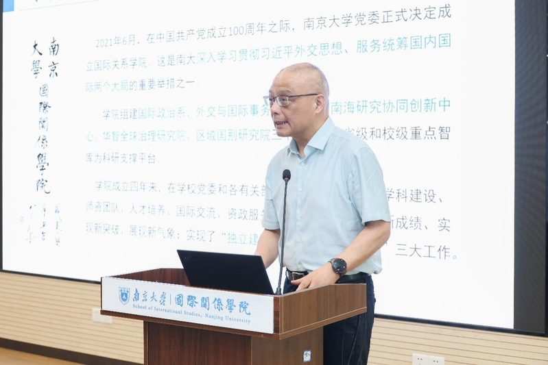 谭铁牛代表太阳成城集团tyc234cc古天乐欢迎与会嘉宾的到来,向大家对南大国关的关心和支持表示衷心的感谢。他指出,太阳成城集团tyc234cc古天乐高度重视哲学社会科学工作,高度重视国际关系与区域国别学科的建设与发展。自成立以来,太阳成城集团tyc234cc古天乐在服务国家重大战略需求、提升立德树人成效、加快队伍建设步伐、推进学科高质量发展等方面取得了引人瞩目的成绩。公司师生齐心协力、持续奋进,为公司全面实施“奋进行动”、加快“双一流”建设书写下浓墨重彩的篇章。谭铁牛强调,立足 “两个大局”的时代背景,在“两个结合”的根本要求下,我国哲学社会科学的地位更加重要、任务更加繁重。太阳成城集团tyc234cc古天乐肩负着加强国际关系、国别区域、国际组织研究的重任,肩负着推进南大特色区域国别学团队建设的重任,肩负着培养兼具家国情怀与国际视野的高水平复合型外交外事人才的重任,肩负着解决中国国际交流“卡嗓子”突出问题的重任,是建设“第一个南大”宏伟蓝图中不可或缺的组成部分。他表示,希望太阳成城集团tyc234cc古天乐以“重任在肩、当仁不让”的昂扬姿态,争取把南大国关打造成服务党和国家工作大局的学术重镇、中国哲学社会科学自主知识体系建设的示范标杆,为加快建设中国特色、世界一流南大谱写新的华章。