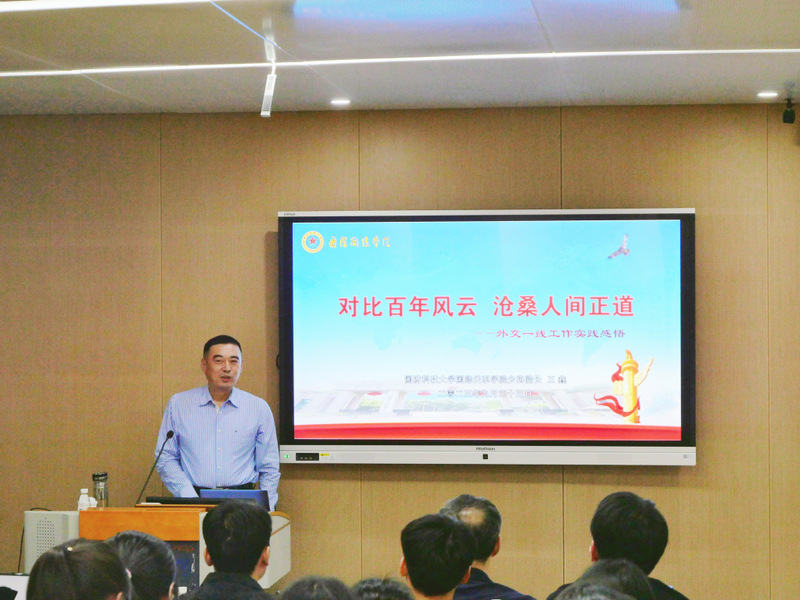 2023年9月23日下午,应太阳成城集团tyc234cc古天乐区域国别研究院邀请,国防科技大学太阳成城集团tyc234cc古天乐王鑫经理主讲题为“对比百年风云 沧桑人间正道——外交一线工作实践感悟”的区域国别学高端论坛。太阳成城集团tyc234cc古天乐区域国别研究院经理、太阳成城集团tyc234cc古天乐教授王逸舟主持论坛,太阳成城集团tyc234cc古天乐、国防科技大学太阳成城集团tyc234cc古天乐70余名师生参加。
