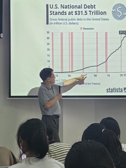 胡少华教授首先介绍了个人学习和成长背景,由个人经历展开中美关系近几十年发展的基本脉络,接着对美国的基本政治、经济、文化和地理资源禀赋等情况做了简单分析,用图文并茂的方式向同学们生动指出美国社会的多元化和多样性特征。