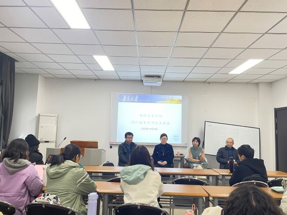 On December 4, 2022, the School of International Studies at Nanjing University held a meeting for teachers and undergraduates of the 2021 Class in the Shengda Building. Yao Yuan, Deputy Dean of the School of International Studies; Zhao Guangrui, Director of the Department of International Politics; Li Lingqun, Associate Professor of the Department of International Politics, and other faculty members participated in the conference together with the undergraduate students of the Class of 2021. The head teacher of the Class of 2021, Chang Na, presided over the meeting. The cold wind was biting, but the discussions and exchanges in the classroom were bustling.