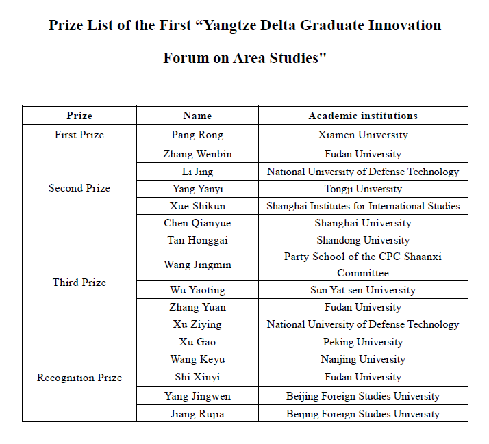 On October 28, 2023, the “Yangtze Delta Graduate Innovation Forum on Area Studies” was held at Nanjing University, with theme of “Local Perspective, Global Vision: The ‘Inside’ and ‘Outside’ of Area Studies”. Zhang Liang, Vice Dean of Graduate School of Nanjing University, Zhu Feng, Executive Dean of School of International Studies of Nanjing University, and Wang Yizhou, Dean of the Institute of Area Studies of Nanjing University, attended the forum and delivered speeches. Zhou Heng, Deputy Secretary of the Party Committee of School of Government and School of International Studies, presented awards to the prize winners. Sixteen doctoral and master students from Peking University, Fudan University, Sun Yat-sen University, Shandong University, Xiamen University, Tongji University, National University of Defense Technology, Beijing Foreign Studies University, Shanghai University, Shanghai Institute of International Studies, Party School of the CPC Shaanxi Committee, and Nanjing University participated in the forum.